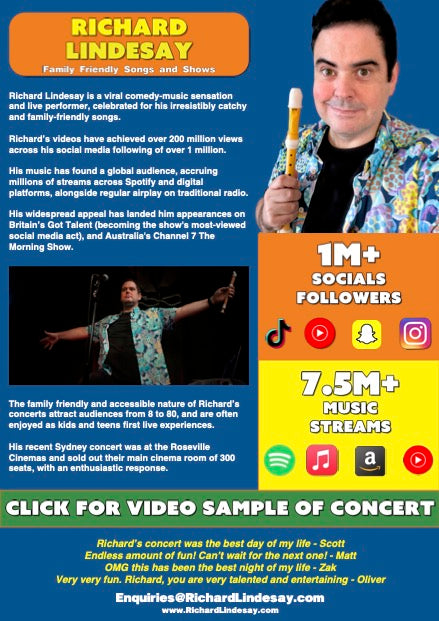 Richard's unique talent for creating cross-generational, viral content makes him a perfect fit for television, radio, stage, and innovative brand campaigns.
